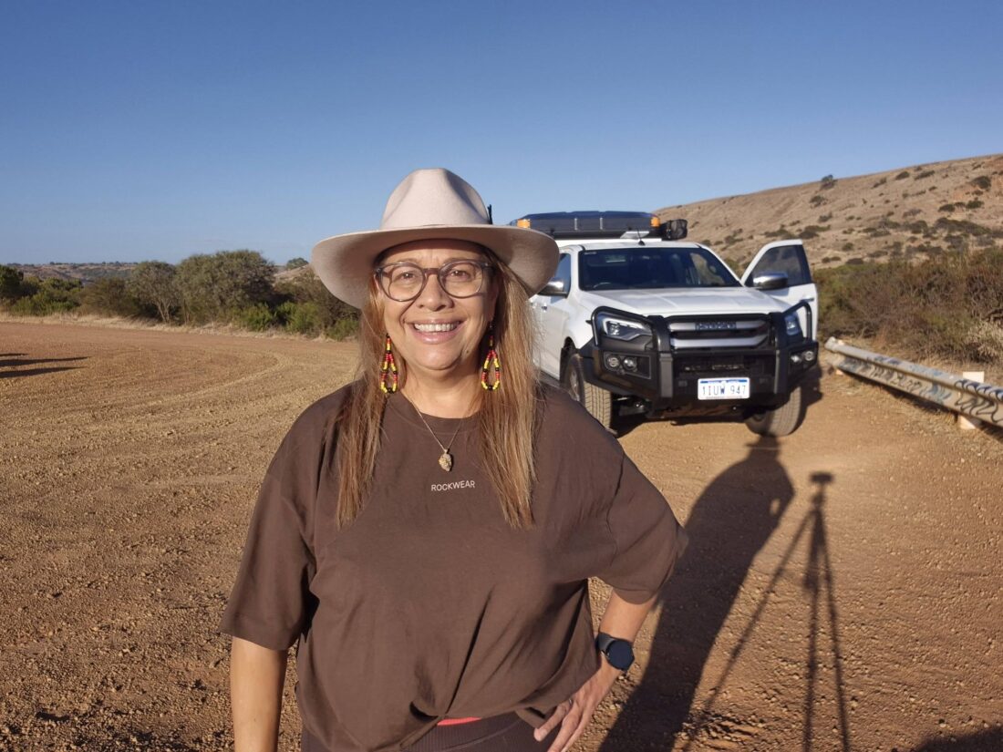 Yamatji leader Kyalie Moore is taking her fight against family violence across Australia. At first light in Geraldton, high on a windswept lookout above Chapman Valley, Kyalie Moore stood alone with her tripod, waiting for the sun to lift over Country. She had planned to film